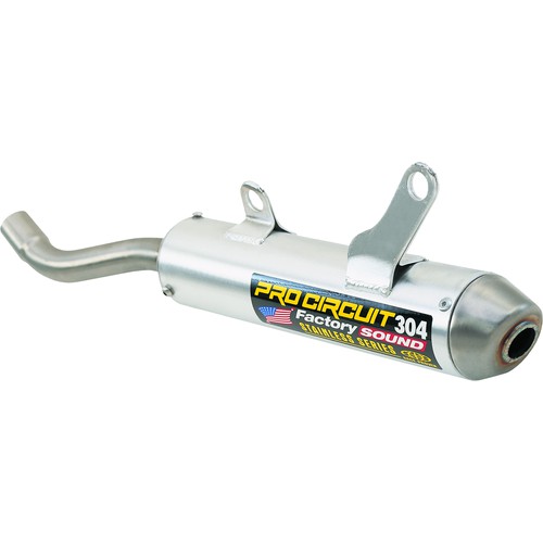 Pro Circuit recommends the 304 silencer for most two-stroke riding applications. The slightly longer body offers added top end performance while reducing noise output. The brushed aluminum body and stainless steel inlet tube and end-cap gives you a silencer that looks as good as it performs.
