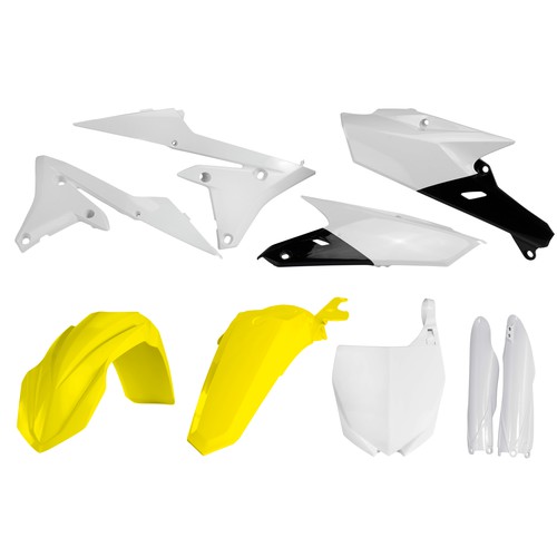 As is noted in the item's description, this kit comes with: Front fender Rear fender Side panels Radiator shrouds If you need more plastics components than that, we have the Acerbis Fork Guards and Acerbis Front Number Plate available separately. With all of that, you'll have a brand-new looking set of plastics to fit your bike!