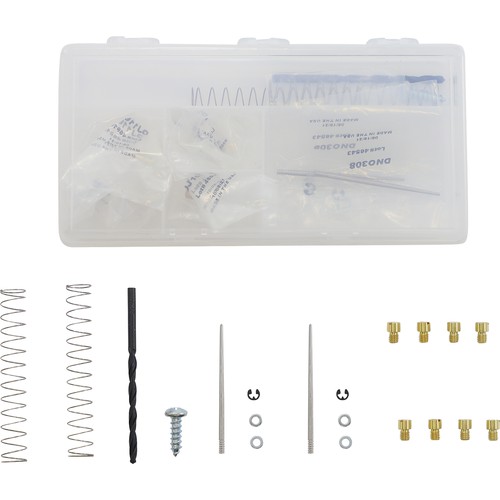 The GS500F jet kit comes with main jets in a range of 120-132 in four-size increments. The GS500F pilot jets are also included. In addition, springs, needles and instructions are also included in the kit.