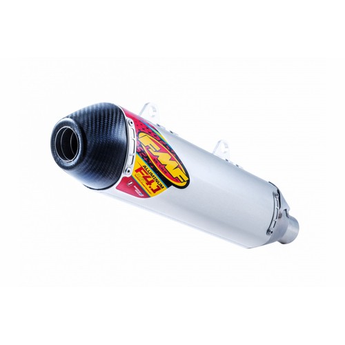 FMF's Factory 4.1 RCT SL slip-on muffler incorporates the latest in RCT (Resonance Chamber Technology) both internally and externally. The core's shape lowers decibels without compromising power output. In addition, FMF designed the muffler specifically to achieve a shorter overall length so as to be less susceptible to crash damage. Complementary to FMF's Factory Forward Engineering, the muffler is also moved closer to the motor to centralize mass and improve handling. Each FMF Factory 4.1 RCT slip-on muffler is constructed from only aerospace grade materials that meet the California company's exacting specifications.