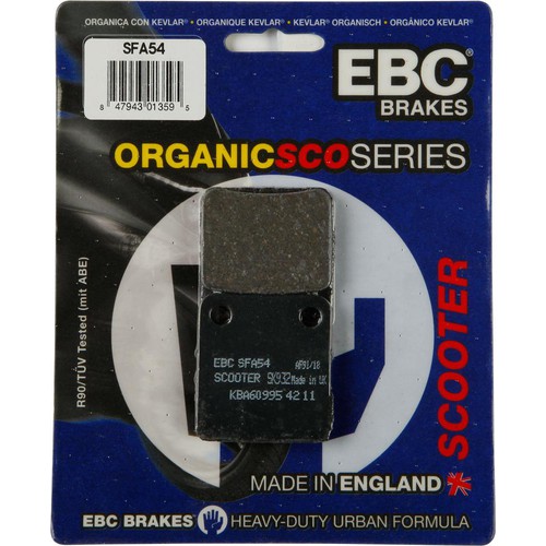 Specifically designed for the daily commuter, EBC's organic scooter brake pads provide excellent stopping power in all conditions. Fabricated using aramid fibers in the UK, these pads last surprisingly long for an organic brake compound.