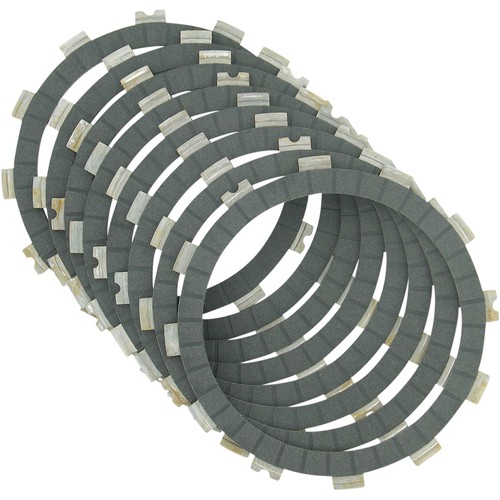 CKF friction plate kits from EBC feature carbon fiber impregnated friction material that's built tough to last longer, grip better, feel better and drive better than stock cork based units. The high heat ability of these CKF carbon fiber clutch plates handles much higher stresses and temperatures encountered in racing yet feel gentle and smooth in everyday riding.