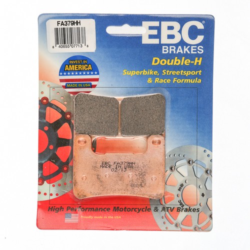 EBC HH sintered brake pads feature a highly refined SB101C friction compound that uses a sintered copper alloy for maximum brake effect and minimal brake rotor wear. This formula virtually eliminates brake noise and is stable over a wide range of temperature, from casual riding around the city to a fast pace through the canyons. Manufactured in EBC's Ohio, USA factory, these are the state-of-the-art street bike brake pads.