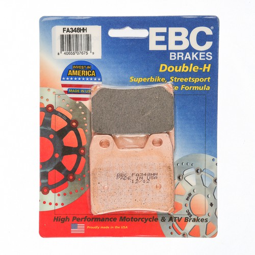 EBC HH sintered brake pads feature a highly refined SB101C friction compound that uses a sintered copper alloy for maximum brake effect and minimal brake rotor wear. This formula virtually eliminates brake noise and is stable over a wide range of temperature, from casual riding around the city to a fast pace through the canyons. Manufactured in EBC's Ohio, USA factory, these are the state-of-the-art street bike brake pads.