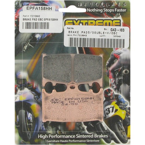 Quite possibly the closest thing you can get to a racing brake pad that's suitable for the street. Less effort at the lever is required to slow you down so you can concentrate on the road ahead. One brake pad for the road or the track, EPFA pads use the familiar HH compound but with added friction stabilizing additives for extra braking power. Manufactured in EBC's Ohio, USA factory, these are the state-of-the-art street bike brake pads.