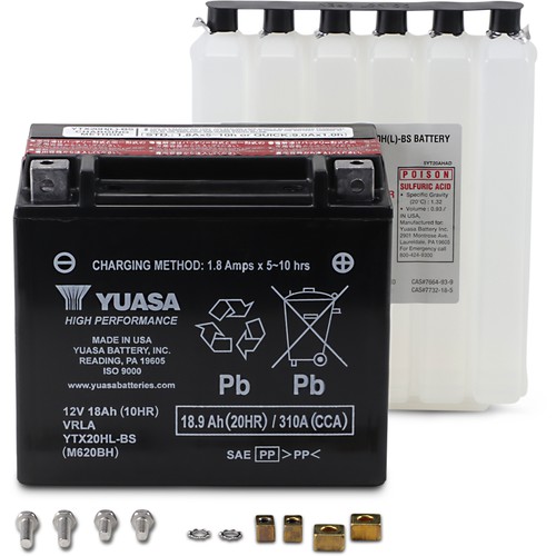 Great battery. I love the way it comes with a separate acid pack. It was very easy to fill and just as easy to install. Comes with everything you need including new nuts and screws. I am replacing a gel battery that only lasted two years. I'll never go back. YUASA is the way to go IMO