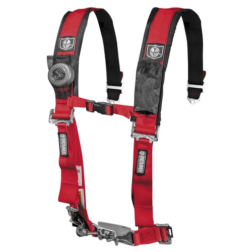 Pro Armor 4 Point Seat Belt Harnesses features your choice of a 2" or 3" harnesses with sewn in pads and a water resistant cell phone pocket to hold your iPhone, Droid or MP3 player. The belts also come with a free LED Flashlight (mesh pocket for light with Velcro closure) and an adjustable sternum strap. These harnesses are also easy in and easy out due to the fact that the shoulder harnesses are sewn to the lap belts so there's less hardware and hassle for the latch and link system. Sewn together harnesses have passed all S.F.I. testing but are not S.F.I. certified for racing.