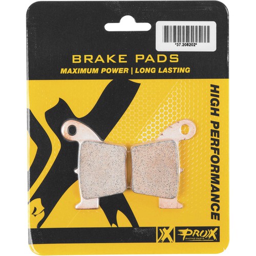 ProX sintered brake pads are produced under a very strict sintering process. During this sintering process, metallic particles are fused by a combination with heat and pressure. Sintered brake pads in general have superior material properties, which very well resist high temperatures during heavy braking and offer greater durability over organic brake pads. The ProX sintered brake pads offer strong controllable brake power in combination with long life. The pads are designed to come as a softer compound front pad and little harder compound pad for the rear pads.