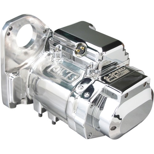 Jims Precision-Cut 6-Speed transmissions with late model improved shift drum and shift lever assemblies. Includes chromed covers, trap door and is shipped complete with bottled transmission oil and instruction sheet.