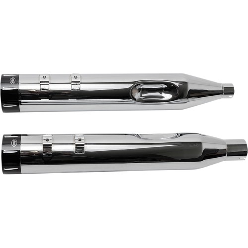 4.5" slip-on mufflers from S&S are the result of decades of riding, racing and tuning. Combining both, a stainless steel perforated core baffle with RaceTEX cartridge packing, they create a deep rumble and improved horsepower and torque, all while adding a unique look with styled aluminum end caps.