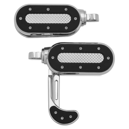 Versatile Heavy Industry Switchblades Footpegs are tough, stylish and allow the rider to deploy flip-out heel rests for additional foot support and unrivaled long-haul comfort. Cast from quality A380 aluminum housings with a rugged design featuring a knurled top surface area surrounded by premium EPDM rubber for reduced vibration, plus ideal traction and control.
