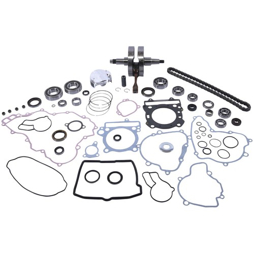 It has almost everything in the kit other than the copper washers other than that very happy. Gaskets bearings, O-rings quality crank piston and rings pin and clips.
