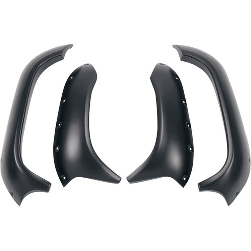 Easy to bolt on, line up to factory lines, durable plastic. Drilling required for install and comes with required hardware. Had all installed in an hour.