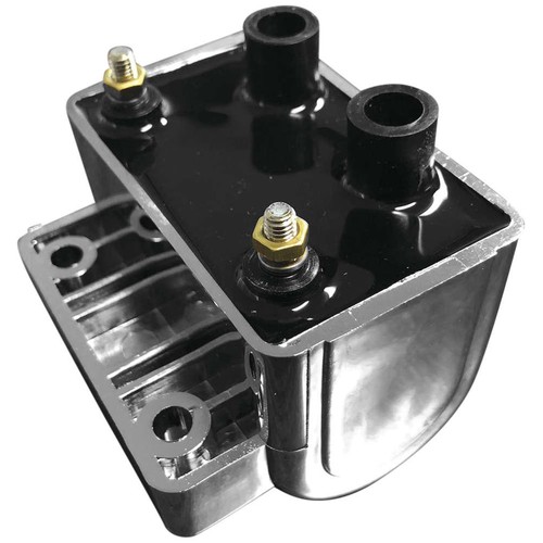Twin Power coils are the high-quality direct fit with at least 20% more voltage than stock. High-quality, molded-epoxy coils for 12-Volt H-D ignition systems increase peak spark voltage by 20% or more! In a late O.E.M.-style molded case, these ignition coils improve starting, stops, high-speed misfires, mileage and overall performance. They are available in black and chrome, and come with a one-year manufacturer's warranty.