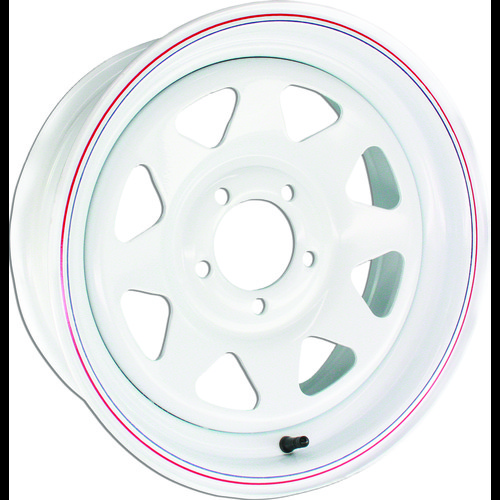 - 8-spoke white painted steel trailer wheel