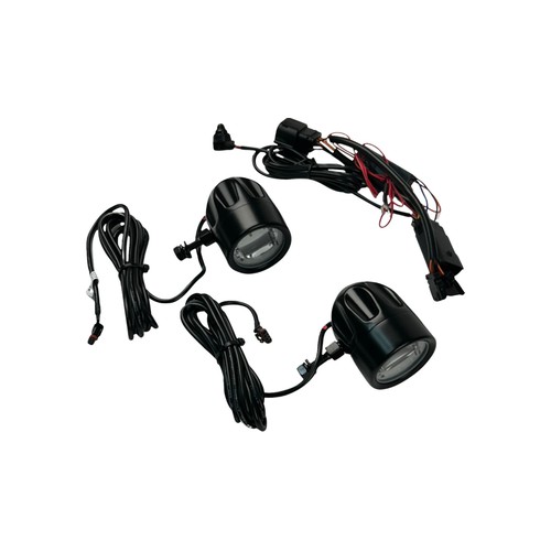 The 2-3/8" diameter lens casts a bright white pool of light near the motorcycle and fills in the dark area between the bike and the low-beam headlamp pattern while 12 white LEDs illuminate as a constant on running light halo