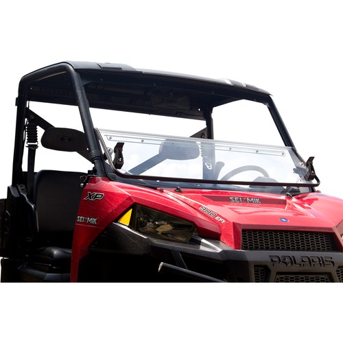 Folding windshield design with a full perimeter seal design (no gap between windshield and roof); seals as good as any full windshield