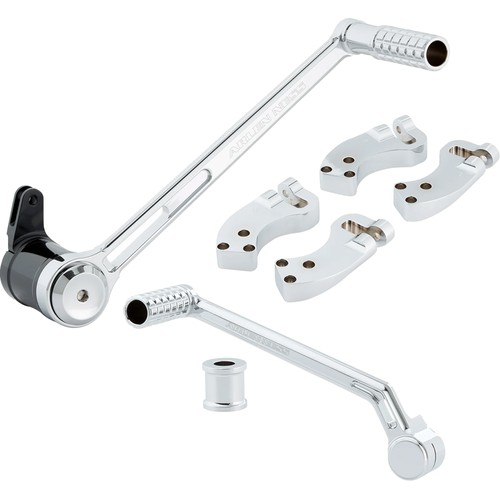 Each kit includes: shift arm, shift arm spacer, brake arm, inner shift lever, shifter rod, floorboard bracket kit, and necessary mounting hardware
