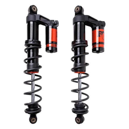 Fox Quick Switch (QS) coil shocks for trail/crossover applications provide the same performance advantage Fox is known for in the back country now. Ride harder with less fatigue without a compromise of durability. Experience a new sense of control on the snow due to velocity and position-sensitive damping technology. Quickly adjust the compression damping with Fox's QS3 to suit snow conditions. Three positions keep the gloves on and the adjustment simple. Focus on riding instead of counting clicks. Fox's position-sensitive damping technology, Rifle Bore, is now applied to the Factory Race Series rear track shock. Spiral grooves inside the shock allow the oil to flow around the main piston, reducing the damping force in the ride zone for a plush feel. The grooves terminate through the final 30% of the travel, forcing oil to flow through the main piston. The final result is a significant increase in bottom-out resistance to cushion hard hits.