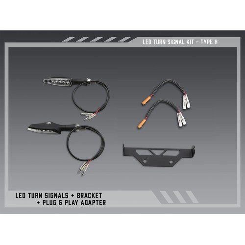 Yoshimura LED turn signals combined with OEM plug wiring adaptors also comes with an intelligently designed, powder coated, stainless steel mounting bracket for the Yoshimura V2 Fender Eliminator Kit. All necessary components for true plug-and-play function are also included if your bike model requires it.